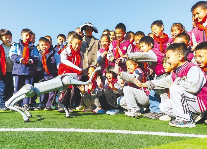 11月19日,秭归县两河口镇蓝白口小学将举办首届校园科技节。县科技馆向偏远山区的小学生展示机器人、机器狗等科学装置,引导学生运用所学的科学知识进行探索,激发学生探索科技的热情,感受科技的乐趣。 (世界网 周世伟 摄)